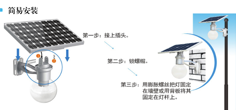 LED太陽能路燈不需要電纜的鋪設(shè):在安裝太陽能路燈時(shí),只需要一個(gè)水泥基座,然后用螺絲在法蘭盤上固定即可,省去了大量的綜合成本。源碼太陽能智慧路燈的安裝更是簡單方便,只需一把螺絲刀,一個(gè)扳手就能完成,而且也方便了后期的修理維護(hù)。
