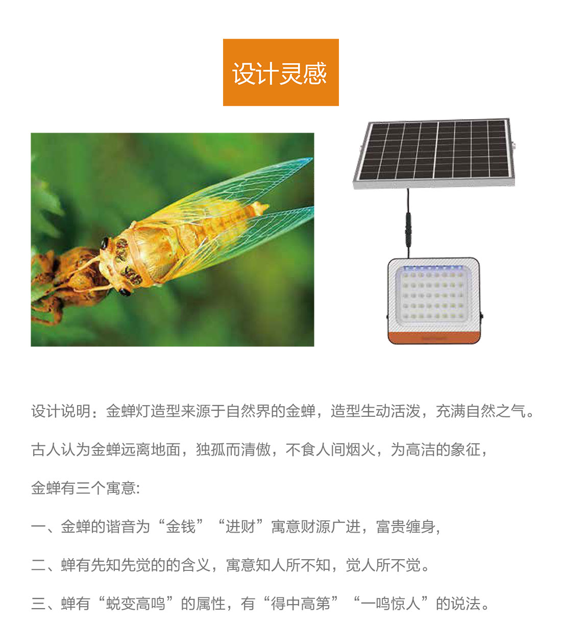 金蟬燈作為太陽能投光燈,被廣泛應用于庭院、廣場、私家花園、別墅、寺廟、農場、戶外廣告牌等場景。